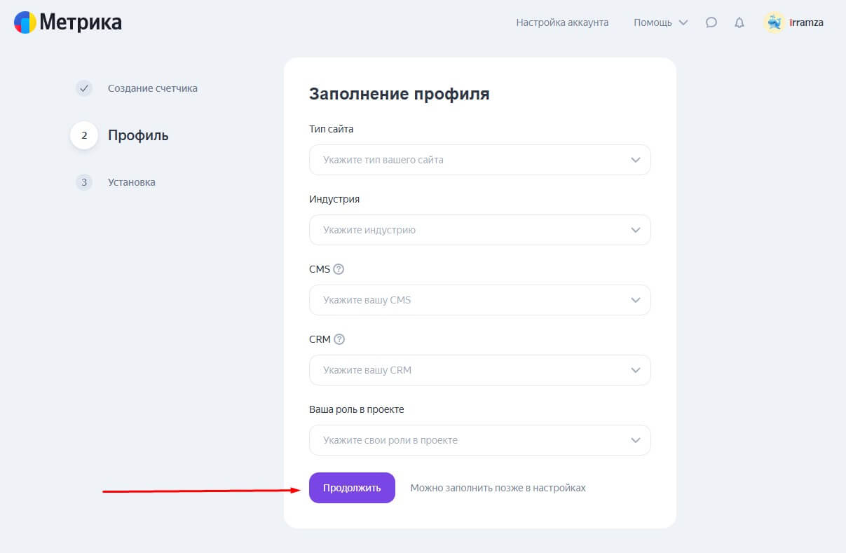3. Этот блок заполнять не обязательно, жмём "Продолжить"